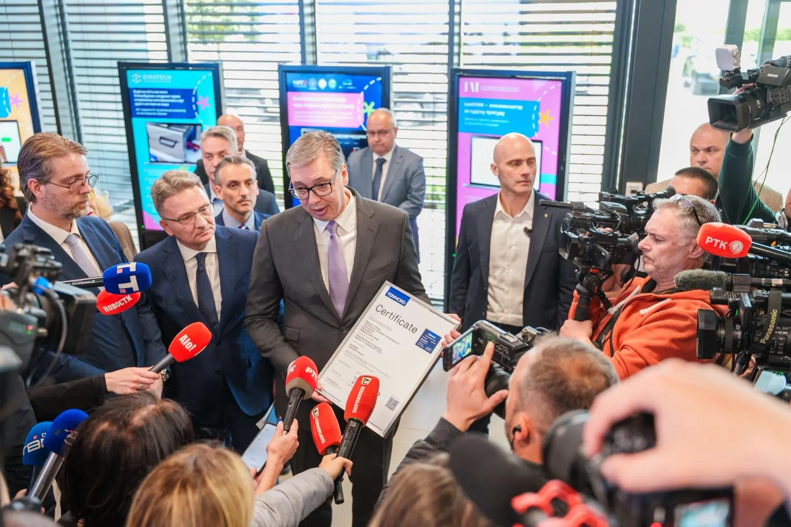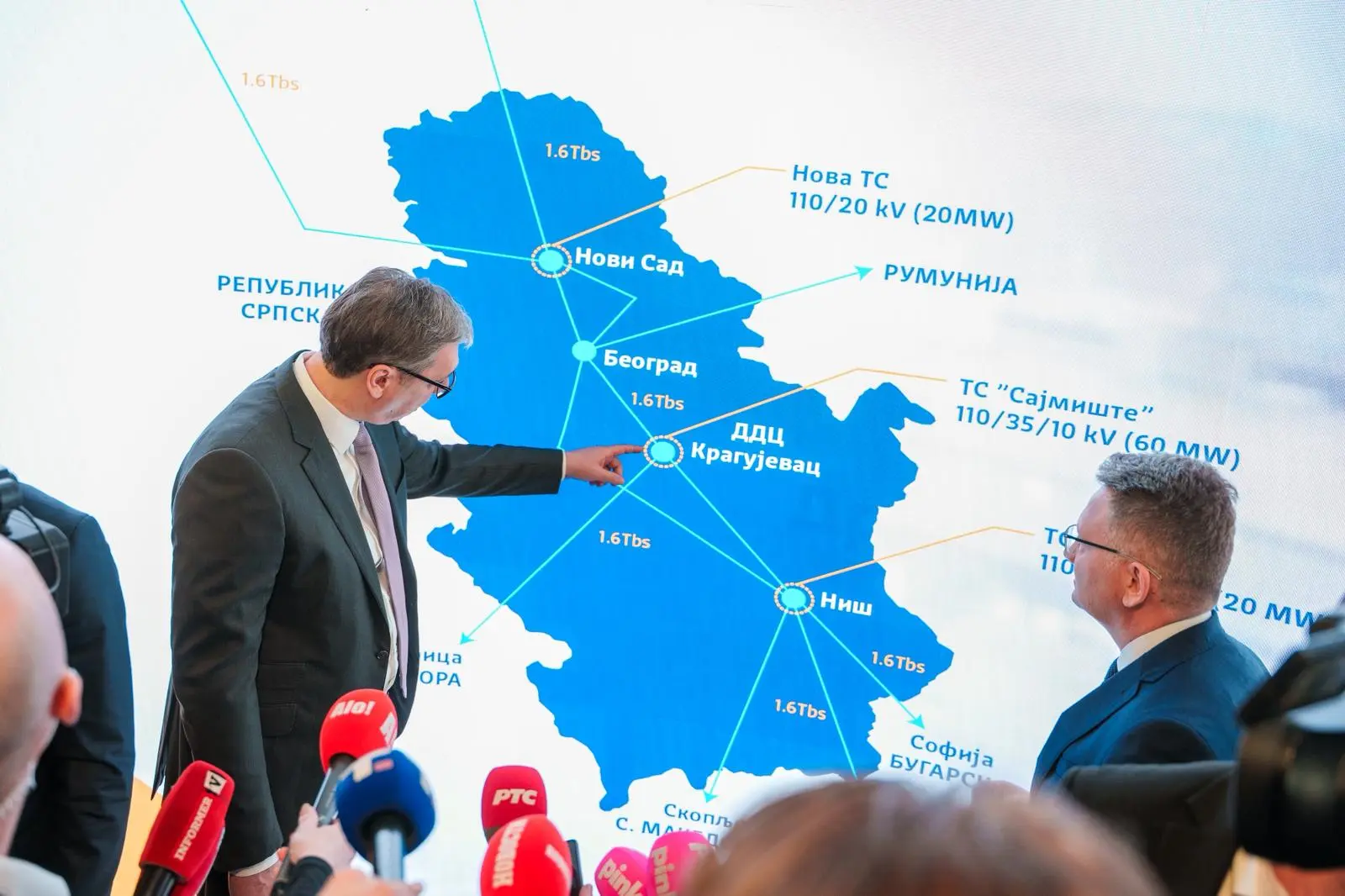 Председник Републике Србије Александар Вучић присуствовао је данас пуштању у рад нових модула Државног дата центра у Крагујевцу, укључујући нови суперкомпјутер и соларне панеле постављене на крову објекта.